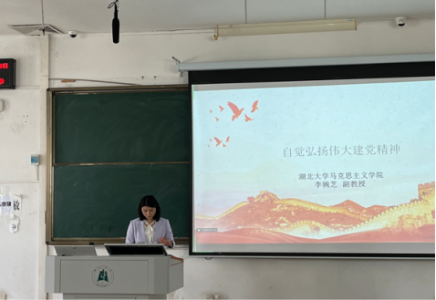 4月26日下午,三亿体育副教授李婉芝老师讲授题为“自觉弘扬伟大建党精神”的形势与政策课。