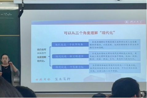 4月21日上午,程亚勤老师讲授题为“以中国式现代化推进中华民族伟大复兴”的形势与政策课。