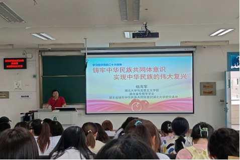 杨海军老师从中华民族多元一体的基本国情、民族团结进步事业的伟大成就、新时代党的民族工作高质量发展,铸牢新时代老员工中华民族共同体意识四个方面向同学们深刻阐释了中国共产党的民族政策。