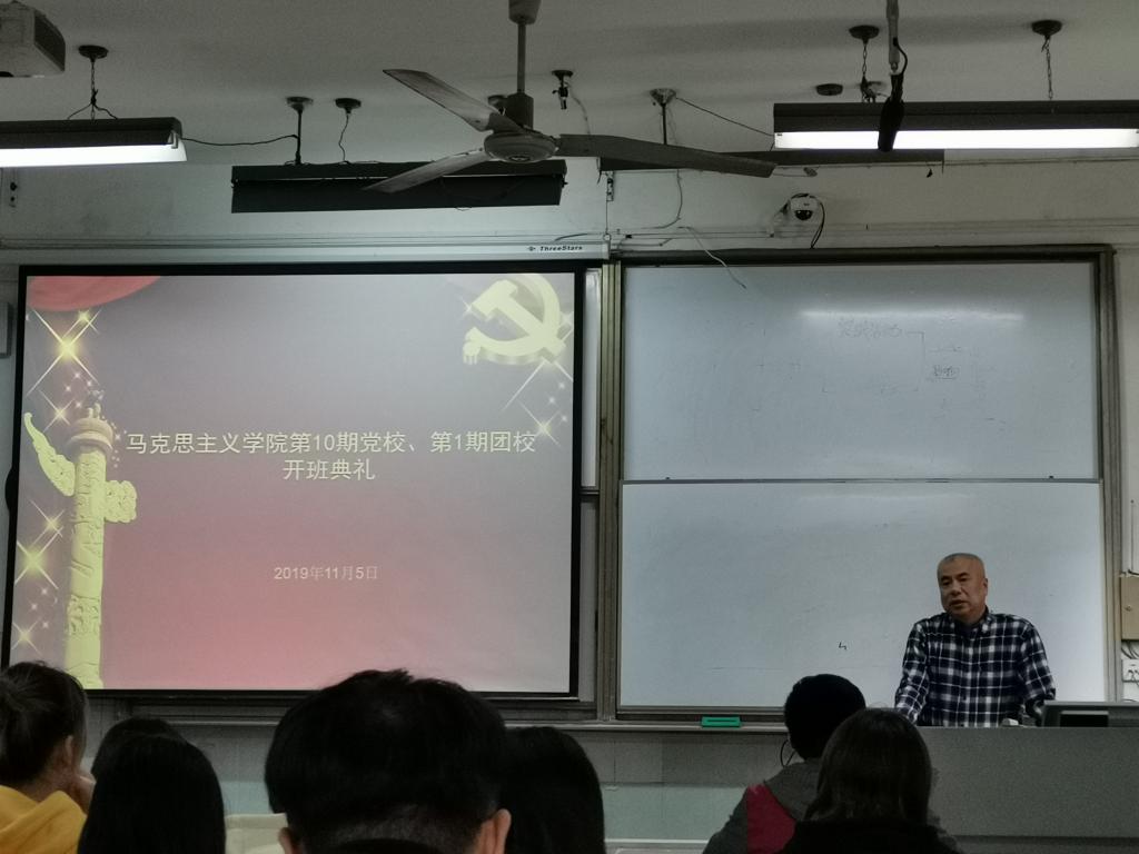 11月5日下午2点10分,三亿体育第十期党校暨第一期团校开班典礼在教二210教室隆重举行,学公司党委书记、党校董事长汤德森出席典礼,学公司党委副书记、党校副董事长王雄及院团委书记邹浩出席开班典礼,王雄主持开班典礼。