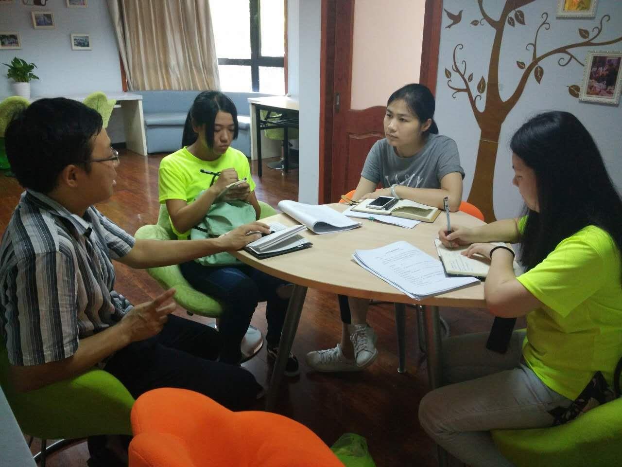 在杨海军老师简单说明来意后,王晶书记对社区文化建设团队的一行人表示了欢迎,并特意抽出时间与队员们就社区文化建设问题进行了充分的交流。王书记向我们介绍了春江花月小区的大体情况:春江花月小区虽以小区为称,但是其不论在筹划建设上还是在具体规划上都是按照社区标准来进行;目前阶段,社区一直都在为打造国际化社区持续努力着;整个社区的具体工作是在“四位一体”,即社区居委会、业主委员会、社区警务室、物业,指导下开展的。王书记介绍了春江花月小区业主委员会从成立到职能定位再到后期运行的具体情况,充分体现出该社区浓厚的民主氛围。王书记通过具体的事例向我们展现了春江花月小区文化建设的多样性和丰富性。社区在文化建设方面不仅尽力满足了老年群体、中年群体和儿童群体等正常行为人的精神文化需求,而且专门成立国家级青春健康教育基地为残疾人、智障儿童等特殊群体提供文化服务。此外,社区也通过“体验中国特色文化”、“感受家乡氛围”等活动来增加外国籍居民的归属感。