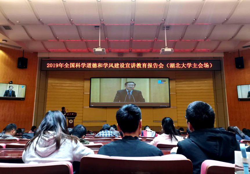 为学习贯彻习近平新时代中国特色社会主义思想和习近平总书记关于科学道德和学风建设的重要指示精神,落实《关于进一步弘扬科学家精神加强作风和学风建设的意见》,深入推进科学道德和学风建设宣讲教育工作,2019年11月13日下午,由中国科协、教育部、中科院等单位共同主办的2019年全国科学道德和学风建设宣讲教育报告会在人民大会堂举行。院高度重视,认真组织师生采取集中收看和自行收看相结合的方式观看报告会直播。