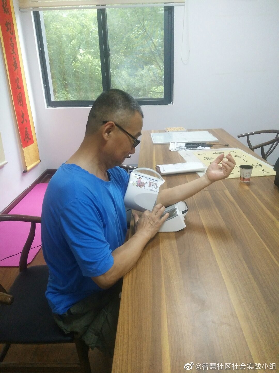 (图为老人在自助测量血压)