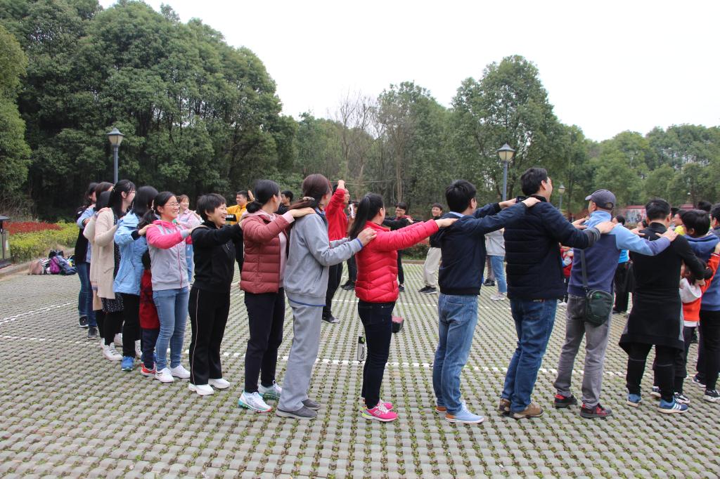此次活动分为三个环节,第一环节为准备活动,在教练的带领下,老师与同学们手拉手形成一个大圆圈,并按照教练的指挥,做出相应的动作,气氛也随之活跃起来。第二环节为三个有趣特别的合作竞技项目,教官先利用报数的方式将全体成员随机的分成了四组,并选出队长和队秘,紧接着,让团队成员合作为各自队伍设计有创意的队名、口号、队歌和队徽。在各个团队成员的共同努力下,冠军队、炎黄队、湖大第三交通委队、改革春风队等新颖独特的团队名诞生。随后,各个团队的成员相互配合,共同努力地完成了巨人的脚步、鼓动人心和砥砺前行等游戏。两人三足可能对某些成员来说小菜一碟,但当一整个团队,十多名成员的脚绑在一起时,大家的脚步便“沉重”起来,但是在多次尝试与团队成员的共同探索下,各团队终于找到规律并完成了比赛,有的团队甚至还能默契的“跑”起来。在紧张却又充满乐趣的合作竞技项目后,进入到最后一个环节——爬山运动,在教练带领下,老师与员工们一同爬山,体验了爬山的“苦”与“乐”。
