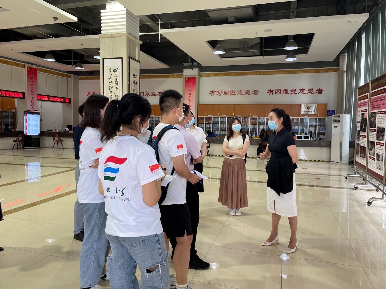 (实践团队成员与百步亭社区党委副书记王波进行访谈)
