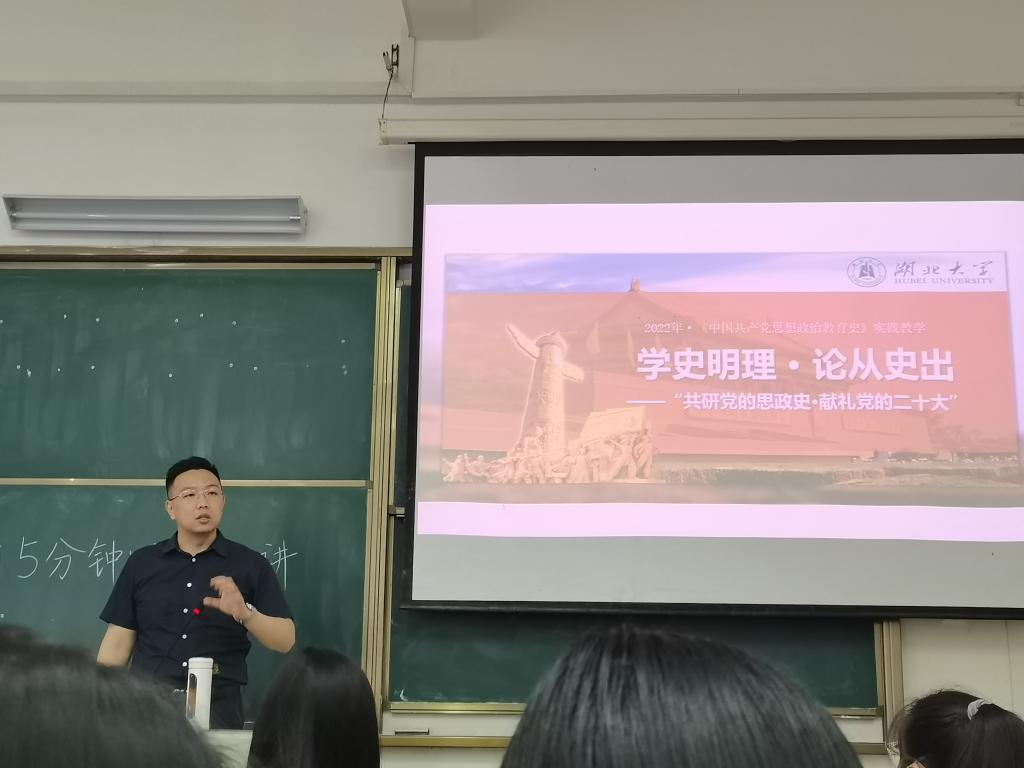 本学期以来,三亿体育讲师王昊以其《中国共产党思想政治教育史》课程为载体, 组织2021级思想政治教育专业员工开展“学史明理,论从史出”特色实践课程。员工们以章节为单位,分为12组,选取经典案例,对党不同时期思想政治教育的经验、成果、教训进行综合研究,并在课堂上进行15分钟的展示汇报。