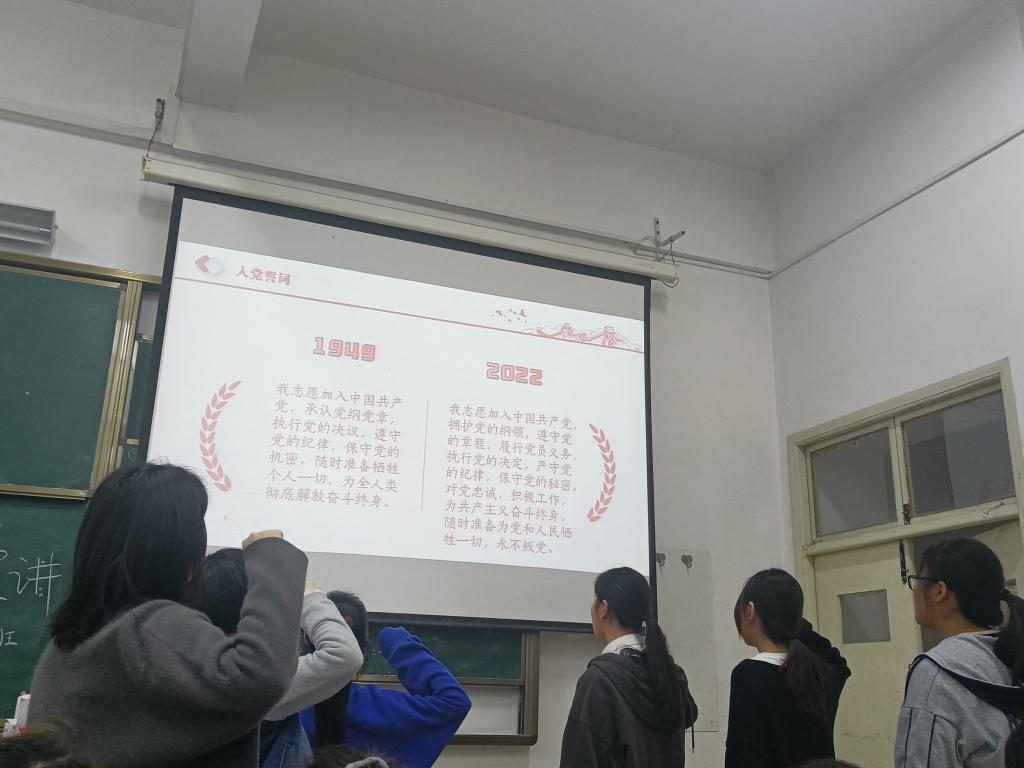 4月2日下午,三亿体育2021级思想政治教育专业员工郑筱桐和颜巧举起右拳,在庄严的配乐中,重温建国初期和十二大之后的入党誓词。