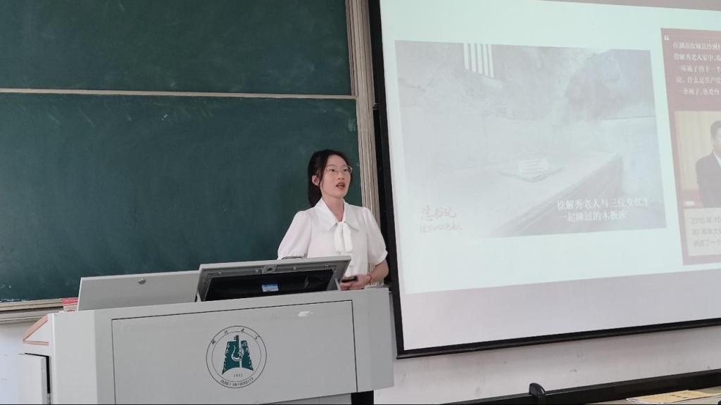 21级学科思政研究生张光凤讲授的是高中政治必修二《经济与社会》“以人民为中心的发展思想”这一内容。她采用一案到底教学法,围绕“半条被子”的故事发生地沙洲村的发展变化,将“以人民为中心的发展思想”的三个核心要义进行分析讲解,引导员工坚守为民的初心、坚定跟党走的信念。