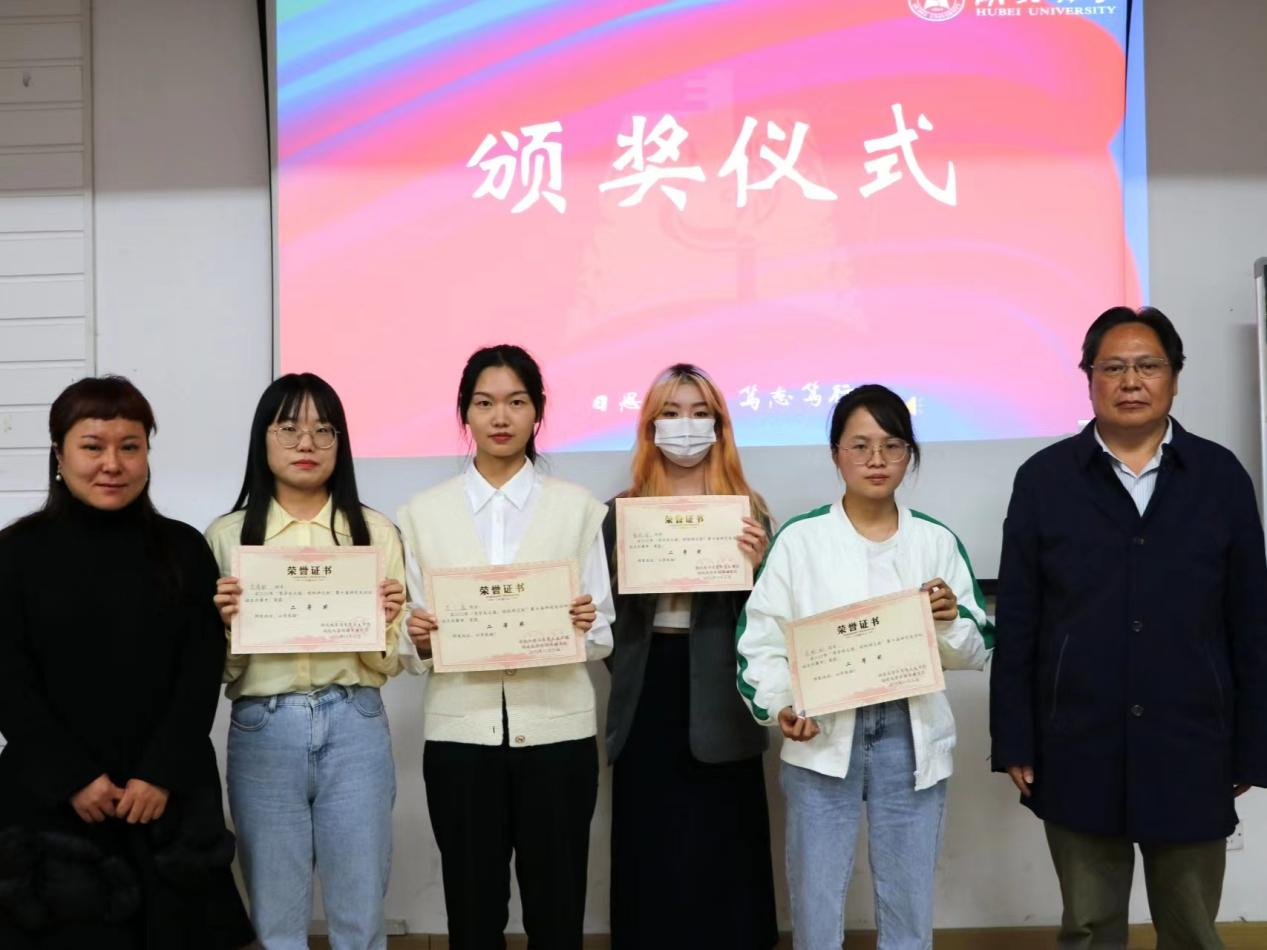 (图为三亿体育王南芳老师,新闻传播公司罗宜虹老师为获得三等奖的选手颁奖)