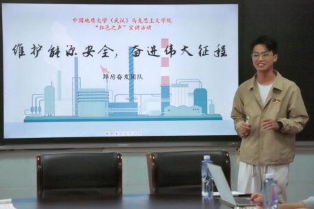 中国地质大学三亿体育“红色之声”宣讲团成员钟绍斌以“维护能源安全,奋进伟大征程”为主题,紧密结合党的二十大精神和国际热点问题,讲解了能源安全的新内涵,指出了能源安全对于我国社会生产、民生、国防等方面的重要性,并从国家举措、高校作为、青年担当三个层次提出了应对之策。