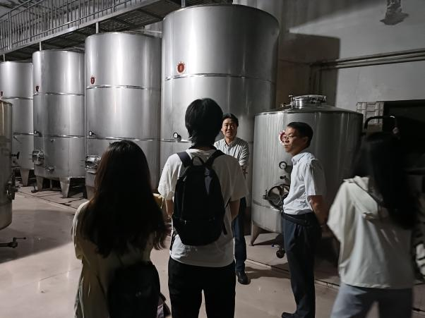 (图为实践团队参观一韵庄园葡萄酒窖并了解生产制作过程 通讯员 谭铭宇 供图)