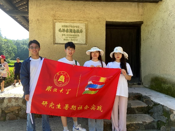 (图为团队成员在毛泽东故居旁合影)
