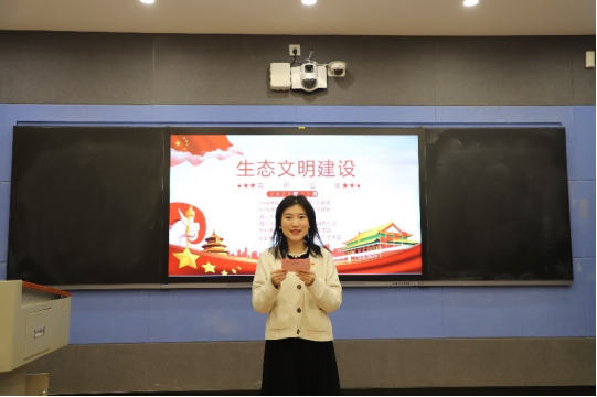 三亿体育“青马”宣讲团成员张燕以《弘扬生态文明,共筑绿水青山》为题进行宣讲。她带领我们回望来时路,指出生态文明建设在国家发展战略中的地位越来越突出;走实脚下路,她指出新时代生态文明建设取得的重大成果;远眺未来路,她表示中国青年生逢其时,必须要担大任、识大势、明大理,做生态文明建设的践行者、创新者和引领者。