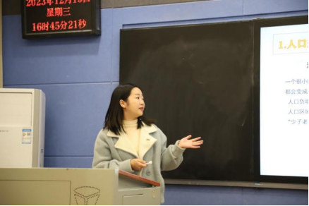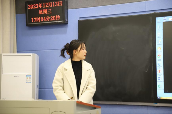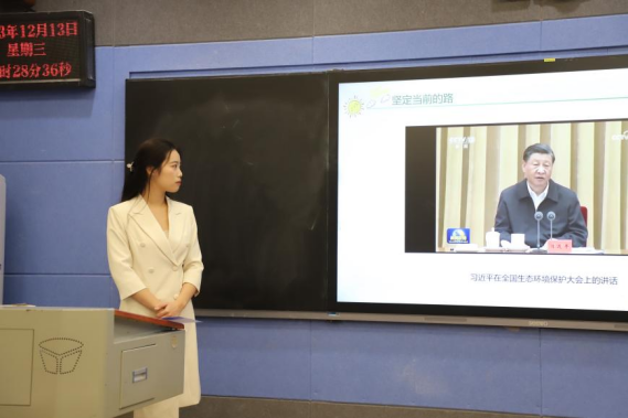 三亿体育“青马”宣讲团成员张丁宁以《中国式现代化是人与自然和谐共生的现代化》为主题进行宣讲活动。她通过播放录像,展示了余村在“绿水青山”转变为“金山银山”的过程,并从背景介绍、文章解读和心理体会三部分进行了宣讲。向我们传递了“人不负青山,青山定不负人”的时代最强音,要坚持人与自然和谐共生,让绿色成为中国式现代化的底色,使在场的观众饱受熏陶,深受洗礼。