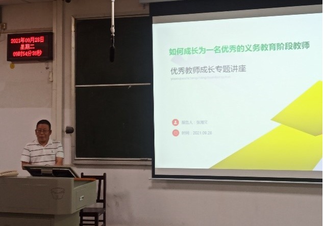 张湘文老师从做一个教育的“傻瓜”、做一个专业的行动者、做一个教育的研究者三个方面讲述了如何成为一名优秀的义务教育阶段教师。