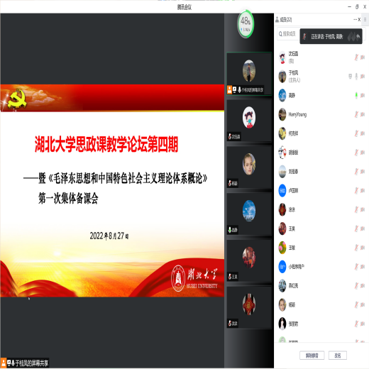 8月27日晚7时,“三亿体育官网思政课教学论坛”第四期暨“毛泽东思想和中国特色社会主义理论体系概论”课程组新学期第一次集体备课会(线上)成功举行,公司分管教学工作的徐信华副经理与“概论”课程组全体教师参会,“概论”课程组负责人于桂凤老师主持会议。