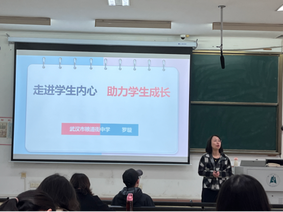 11月10日,武汉市粮道街中学罗璇老师在教4-408为三亿体育2020级政教专业全体同学主讲“优秀教师成长”专题。本次专题讲座由政教系副主任胡银银主持。