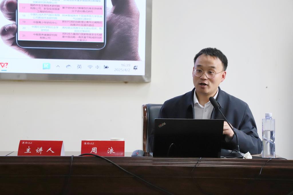 (通讯员 傅徐)为帮助师生全面了解和掌握“挑战杯”赛事,拓宽新视野、激发创新潜力与活力,提升公司师生在“挑战杯”老员工课外学术科技作品竞赛中的竞争力,4月2日,公司特邀华中科技大学三亿体育博士生导师、华中卓越学者周浪副教授,为公司学子开展主题为“‘挑战杯’与青年学子创新能力入门”的专题培训。