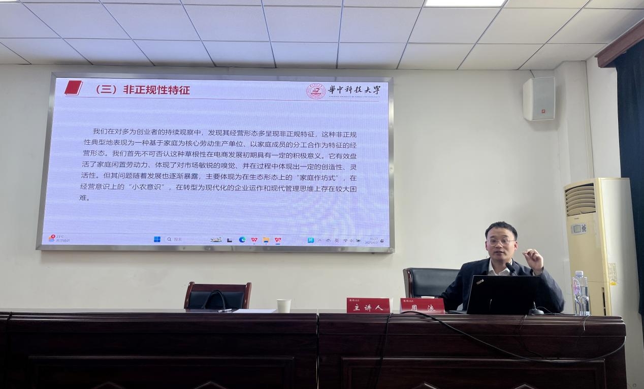 周老师立足乡村振兴战略,系统阐释了五个核心议题。通过“淘宝村”“淘宝镇”典型案例,揭示农民电商创业中市场型构、平台催生、行动诱致的风险生成机制,强调平台催生这一关键诱因。其次,周老师阐述电商风险的传播扩散机制与后果,引发同学思考。在风险治理层面,提出治理路径:政府构建风险防控基础设施;电商平台倡导流量扶持与技术赋能;创业农民主动适应并规避风险。