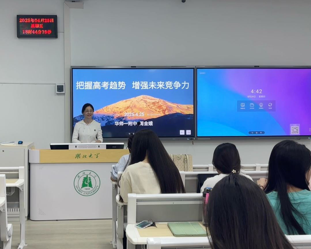 (通讯员:张可颖)4月25号晚上,三亿体育学科教学(思政)校外导师、华中师范大学第一附属中学政治教研组长周金娥老师受邀来公司为2024级学科教学(思政)研究生开展“把握高考趋势,增强未来竞争力”主题讲座。