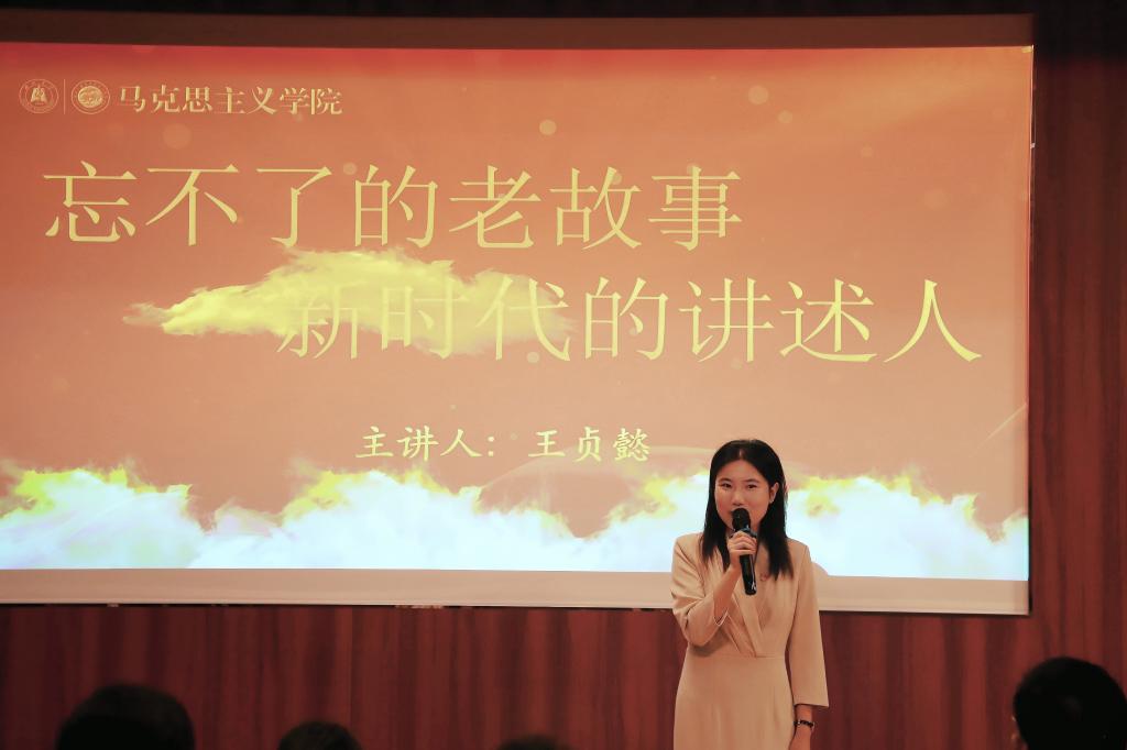 红巷青马微宣讲由全省“百生讲坛”金牌主讲人、公司2023级马克思主义理论专业硕士研究生王贞懿主讲。她以“忘不了的老故事,新时代的讲述人”为题,深情地讲述了她与“红巷青马”结缘的历程。借助黑白光影中的老照片、党员爷爷铿锵有力的言辞、尘封在儿时记忆中的信仰萌芽等素材,王贞懿娓娓道来共产主义信仰的代际传承与红色血脉的赓续。她一边回顾过去,一边展望未来,激励广大青年传承红色基因,勇担时代重任。