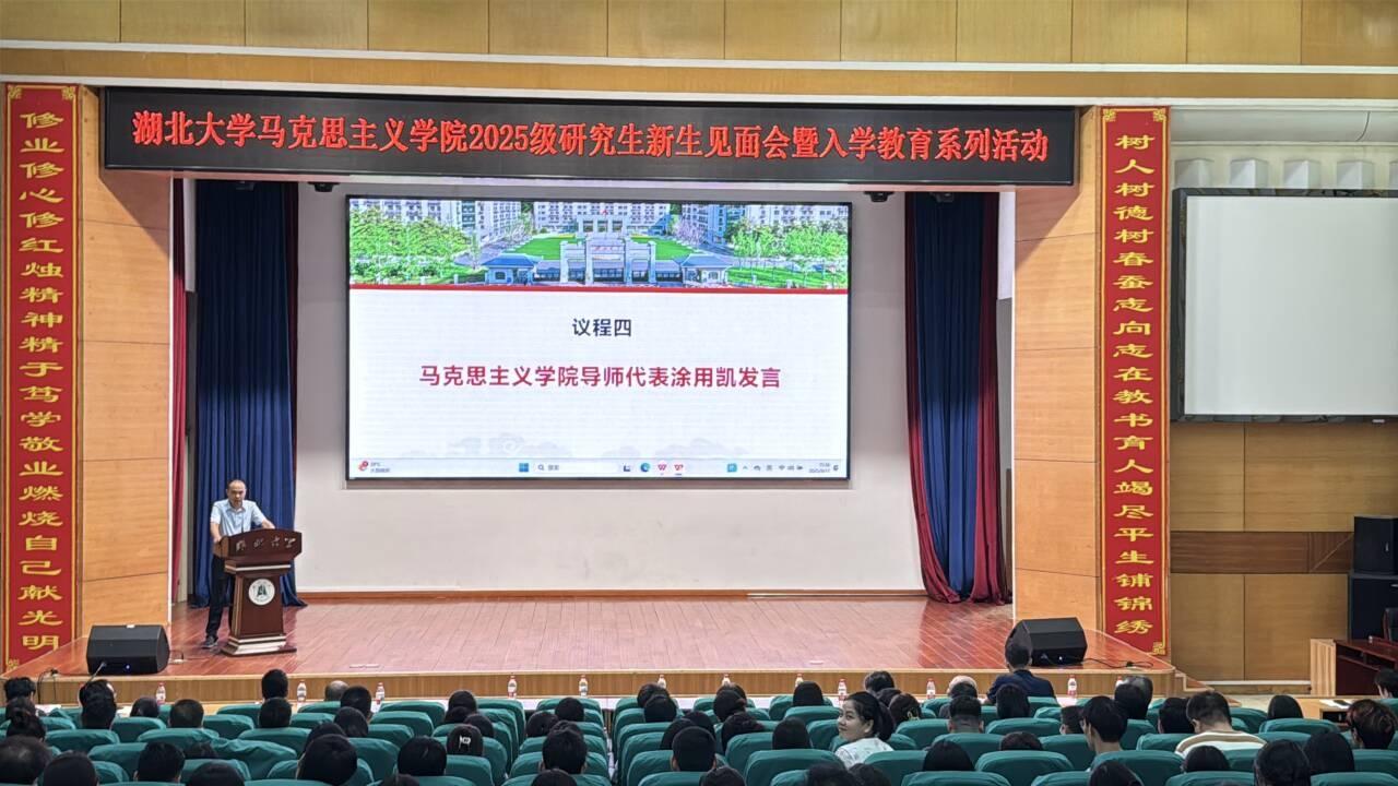 研究生导师代表涂用凯教授结合自身指导经验,对新生提出三点期望:一是要夯实理论基础,系统研读马克思主义经典著作,筑牢学术根基;二是要积极投身实践,主动参与各类学术与社会实践活动,在实践中提升理论联系实际、解决具体问题的能力;三是要树立远大志向,将个人学术追求与国家发展需要紧密结合,勇于担当时代赋予的使命。涂老师表示,全体导师将恪尽职责、倾心指导,为同学们的成长成才提供坚实支持。
