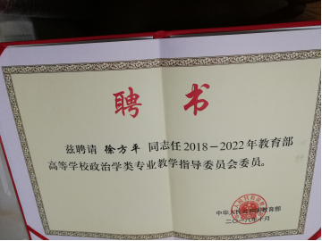 2018年11月初,教育部新一届即2018—2022年届教指委委员产生,并召开了各专业委员会委员代表会议。12月初,政治学类教学指导委员会召开成立大会,徐方平教授蝉联。