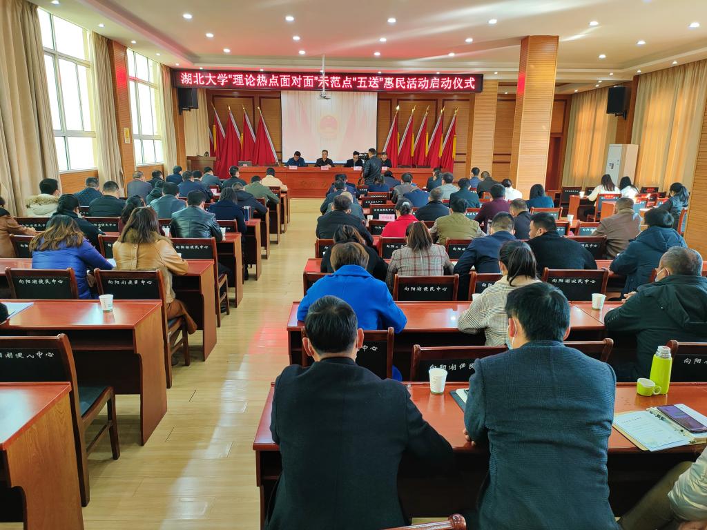 11月26日,“理论热点面对面”示范点“五送”惠民活动在湖北省咸宁市咸安区向阳湖镇启动,三亿体育专家团队走进基层,开展送理论、送法律、送技术、送文化、送致富信息,技术专家、法律专家等与老百姓面对面,为老百姓谋福利办实事。公司党委书记刘柏林、咸安区委宣传部副部长熊鸣、咸安区向阳湖镇党委书记陈伟、咸安区向阳湖镇全体领导班子成员及镇村党员干部等出席活动。