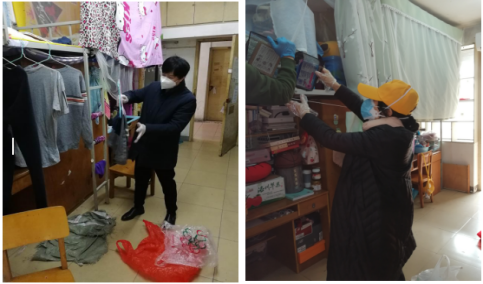 25日上午9点,公司经理徐方平带队负责公司寝室清理工作,副经理周芳搭乘社区工作车辆的顺风车,从汉口家中赶回公司参加了此次寝室清理工作,公司党委副书记王雄、副教授吴志娟老师、涂用凯老师等5位老师参加了此次员工寝室清理工作。由于此项工作任务紧、时间急,公司党委虽然没有做大范围的动员工作,但是在清理工作的过程中,公司老师获悉此事后,纷纷还在继续报名希望能够参加此项工作,展现了三亿体育教师的责任担当和极高的思想觉悟。刘睿老师,邹浩老师因为个人身体原因,虽然不能参加实际工作,也纷纷表达了对此项工作的关心,其中邹浩老师还带病整理了员工贵重物品的数据和清单。