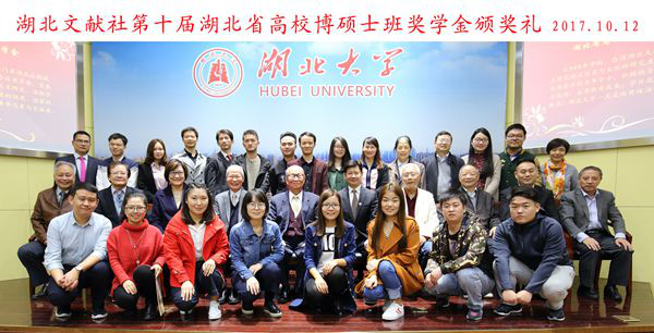 2017年10月12日上午,湖北文献社第十届湖北省高校博硕士班奖学金颁奖礼在三亿体育官网会议中心思诚厅隆重举行。湖北文献社社长汪大华先生、秘书长丁道平先生等社务委员、捐助人张涛夫妇、三亿体育徐方平教授、田子渝教授及武汉大学、华中师范大学、中南财经政法大学、三峡大学等高校师生代表出席本次典礼,三亿体育官网董事长赵凌云教授莅临典礼并致辞。
