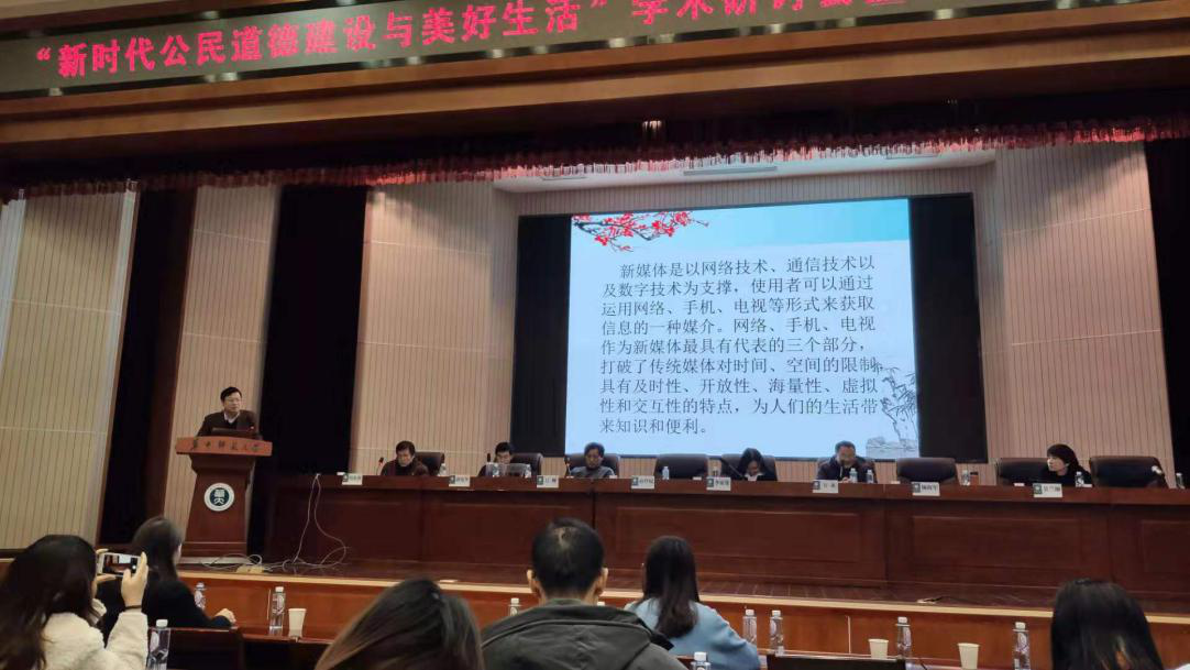 为了践行2019年10中共中央、国务院颁发的《新时代公民道德建设实施纲要》文件,12月21日,湖北省伦理学学会在华中师范大学科学会堂举行主题为“新时代公民道德建设与美好生活”的2019年会暨学术研讨会。湖北省伦理学学会理事、公司杨海军老师和刘琳、何书雯、王倩、吴曼曼、杨露、赵司宇等研究生参加了此次会议。