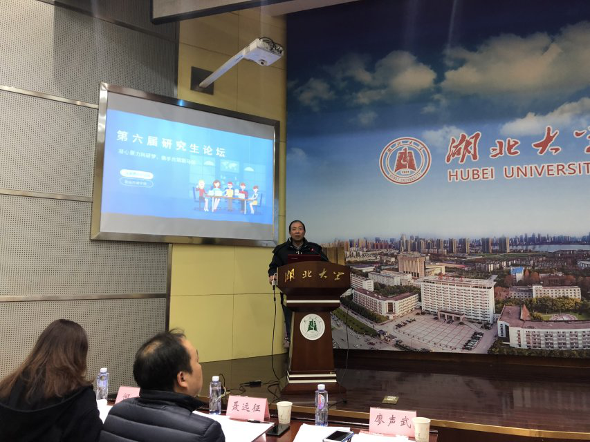 新闻传播公司经理廖声武教授在致辞中指出,这是两院第三次共同举办学术论坛,大家相互交流与学习,共同进步。研究生学术论坛对于研究生来说是一个很好的平台,让大家有一个很好的锻炼机会。同时廖声武经理对同学们提出了三点希望:希望同学们能充分利用论坛的平台展示出自身的研究成果,同时能够学以致用,多关注社会现象,研究社会问题;希望同学们能增强学习的自觉性,多阅读勤思考,开阔自身的视野,做好理论知识储备;希望同学们从学术论坛中受到启发,加强学习,提高自己的写作和研究水平,提升专业素养。