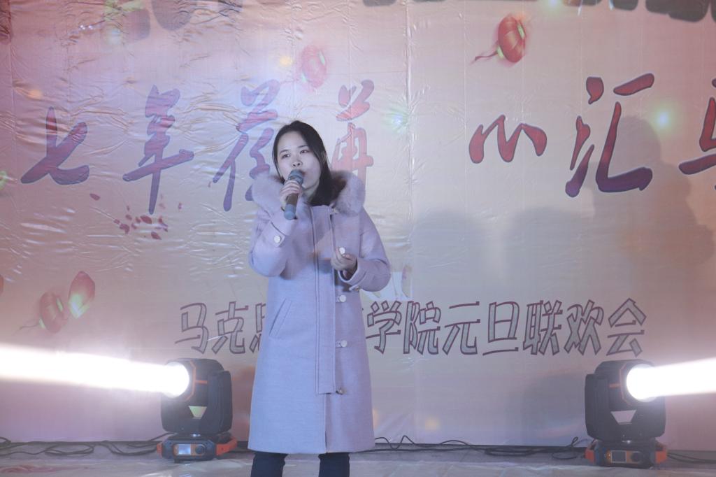公司的元旦晚会延续着“马院一家人”的理念,师生共同参与到马院的元旦晚会,不仅有员工的风采,老师也为大家带来了精彩的节目,马院老师一起合唱《我爱你中国》,点燃了同学们的爱国心,在歌声郎朗中展现了马院的风采。郭劲松老师也在同学们的呼声中,即兴演唱歌曲,掀起了元旦晚会的另一次高潮!