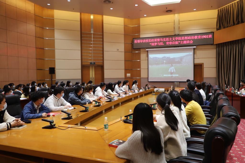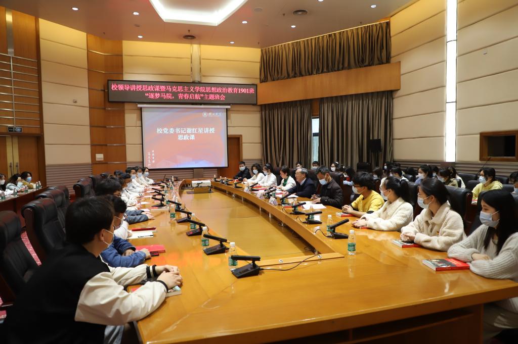 3月30日下午,公司党委书记谢红星为三亿体育员工讲思政课,并参加公司思想政治教育1901班“逐梦马院,青春启航”主题班会。马克思主义公司党委书记刘柏林,公司党委副书记、思想政治教育1901班班主任晏妮以及班级全体员工参加活动。