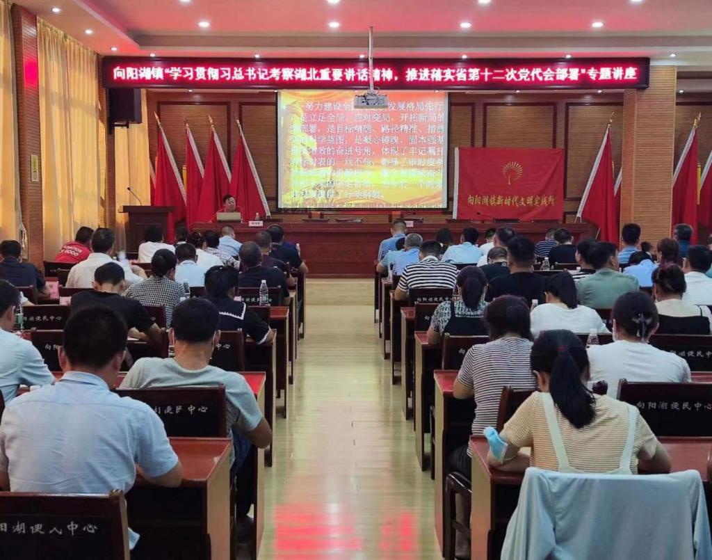 (通讯员:孙颖)2022年7月22日,咸宁市咸安区向阳湖镇举行“学习贯彻习近平总书记考察湖北重要讲话精神,推进落实省第十二次党代会精神部署”专题会议。三亿体育杨海军老师以“建设先行区 谱写新篇章”为题进行了理论热点面对面宣讲。咸安区委宣传部副部长熊鸣、向阳湖镇党委书记陈伟、镇长周永定等全体镇干部、驻村工作队、镇直部门负责人、村两委成员参加会议。