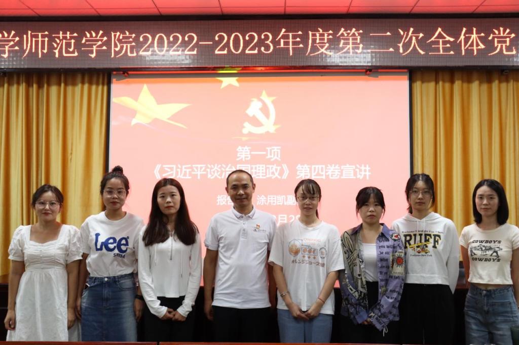 9月28日下午,按照公司统一安排,涂用凯老师在师范公司233学术报告厅做了《习近平谈治国理政》第四卷第一专题主题的宣讲讲座。师范公司全体师生党员,马院研究生宣讲团部分成员参加本次宣讲活动。