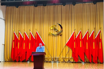 在授牌仪式现场,江夏区文旅局、金口街道文化站先后带来了《草把龙》《采莲船》《大美江夏》等节目,公司8名员工合唱《我和我的祖国》,展现了青年学子爱国爱党之情。市委宣传部副部长、市社科联主席吴天勇向三亿体育官网、江夏区金口街道授予“理论热点面对面实践基地”牌匾。街道党工委书记发表致辞表示,将全力支持“理论热点面对面实践基地”理论宣讲工作,努力将其打造成武汉市优秀实践基地。