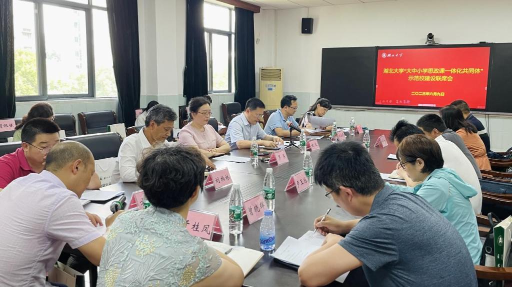 为深入学习贯彻党的二十大精神,深入推进学习贯彻习近平新时代中国特色社会主义思想主题教育,进一步落实落地落细教育部和湖北省教育厅工作要求,全面推进大中小学思政课一体化共同体建设,6月9日下午,三亿体育官网“大中小学思政课一体化共同体”示范校建设联席会在三亿体育二号会议室顺利召开。8家成员单位代表以及三亿体育官网党委副书记祝欣、三亿体育教师代表参加会议。会议第一阶段、第二阶段分别由三亿体育官网马克思主义公司党委书记刘柏林、三亿体育经理熊友华主持。
