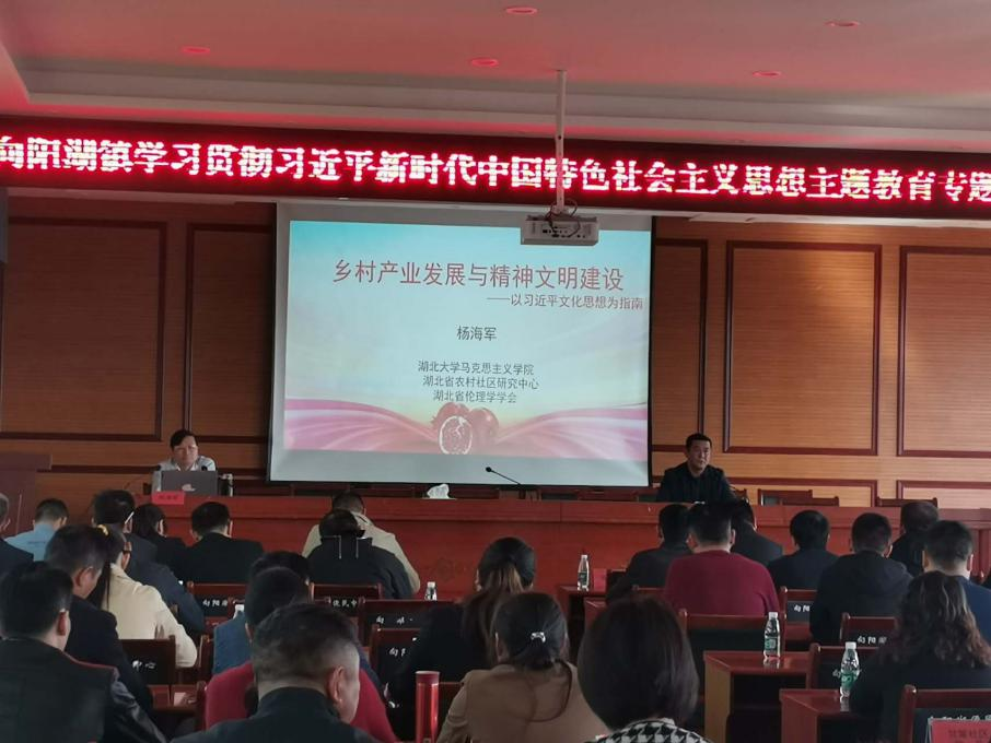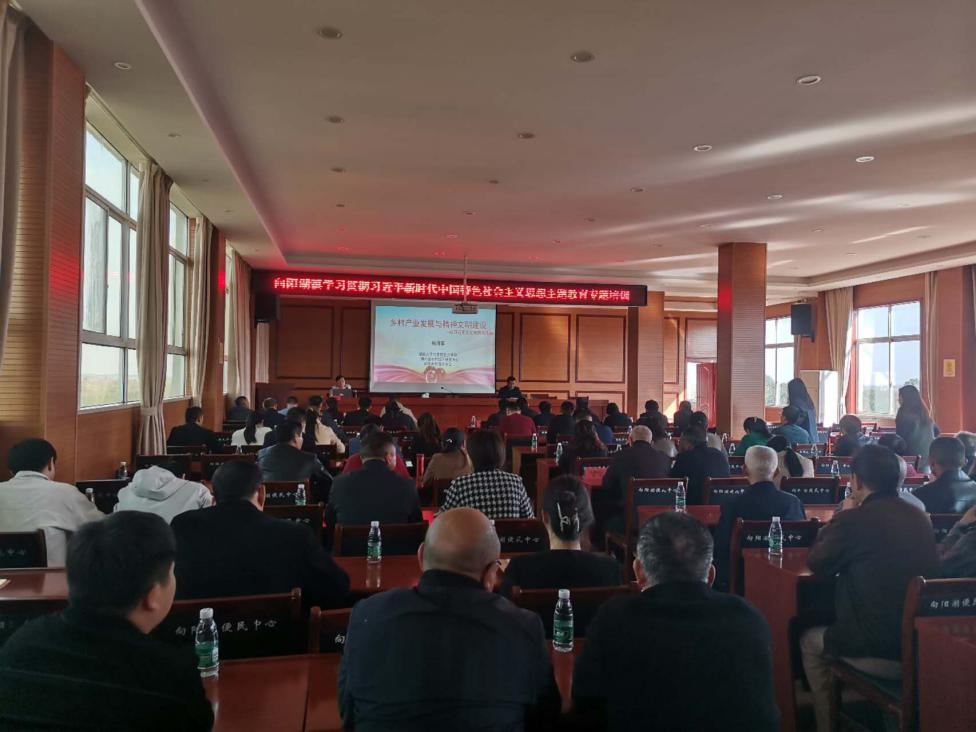 (通讯员 邢肖依)2023年11月6日,向阳湖镇举办“学习贯彻习近平新时代中国特色社会主义思想主题教育专题培训”,公司杨海军老师受邀做了“乡村产业发展与精神文明建设”主题宣讲。会议主会场设在向阳湖镇便民服务大厅四楼会议室,各村会议室、宝塔社区会议室设分会场,全体镇干部、村(社区)两委干部、国土所、林业站负责人、各村(社区)党员参加了宣讲报告会。报告会由向阳湖镇党委书记陈伟同志主持。