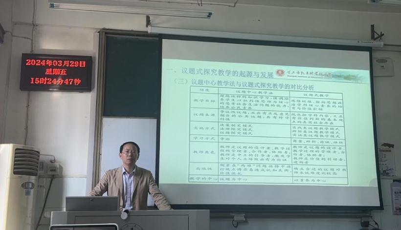 马老师的讲座主题是《议题式教学设计要略》,这一主题是当下备受关注的教育话题。马老师结合自身丰富的教学和研究经验,从议题式探究教学的起源与发展、议题式探究教学的内涵与价值、议题式探究教学的设计与优化三个方面给同学们带来了一场内容丰富、内涵深刻的讲座。在讲座中,马老师与同学们分享“科学社会主义”的教学设计,从不同角度解读马克思,以马克思平凡的一面为切入点进行议题设计,增强可议性,使议题更加出彩。马老师指出,在进行议题设计时要注意:第一,中心议题既要反映课程的具体内容,又要展示价值判断;第二,要体现生本性,立足学情与生活;第三,要体现议题设计的结构化、序列化。