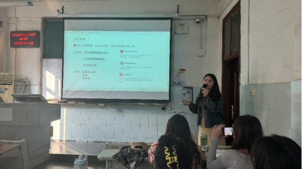 5月11日下午,王潇同学围绕武汉示范性公司专项招聘相关事宜,从自身备考历程、初试面试流程、及上岸后的准备等几方面为同学们作出详细分享。王潇向大家分享了诸多有关武汉市教师招聘的有关信息与资料,并提醒同学们一定要善于寻找就业信息,妥善安排学业与工作。