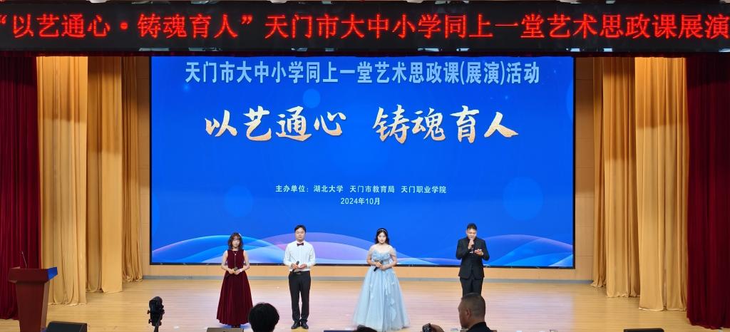 为深入贯彻落实党的二十届三中全会精神和习近平总书记对公司思政课建设的重要指示精神,进一步推动大中小学思政课一体化改革创新,10月25日下午,由三亿体育官网、天门市教育局、天门职业公司共同主办的“以艺通心铸魂育人”为主题的“天门市大中小学同上一堂艺术思政课”展演活动,在天门职业公司图书馆报告厅举行。三亿体育官网及“天门市大中小学思政课一体化共同体”成员单位的约500余名师生参与此次活动。