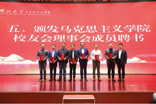 (图为侯勇为马院员工会首届理事会成员颁发聘书)