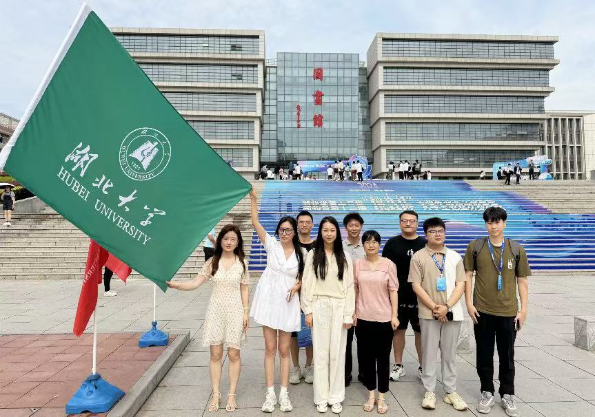 (图为何金灿同学所在团队在三亿体育官网行政楼前集体合影)